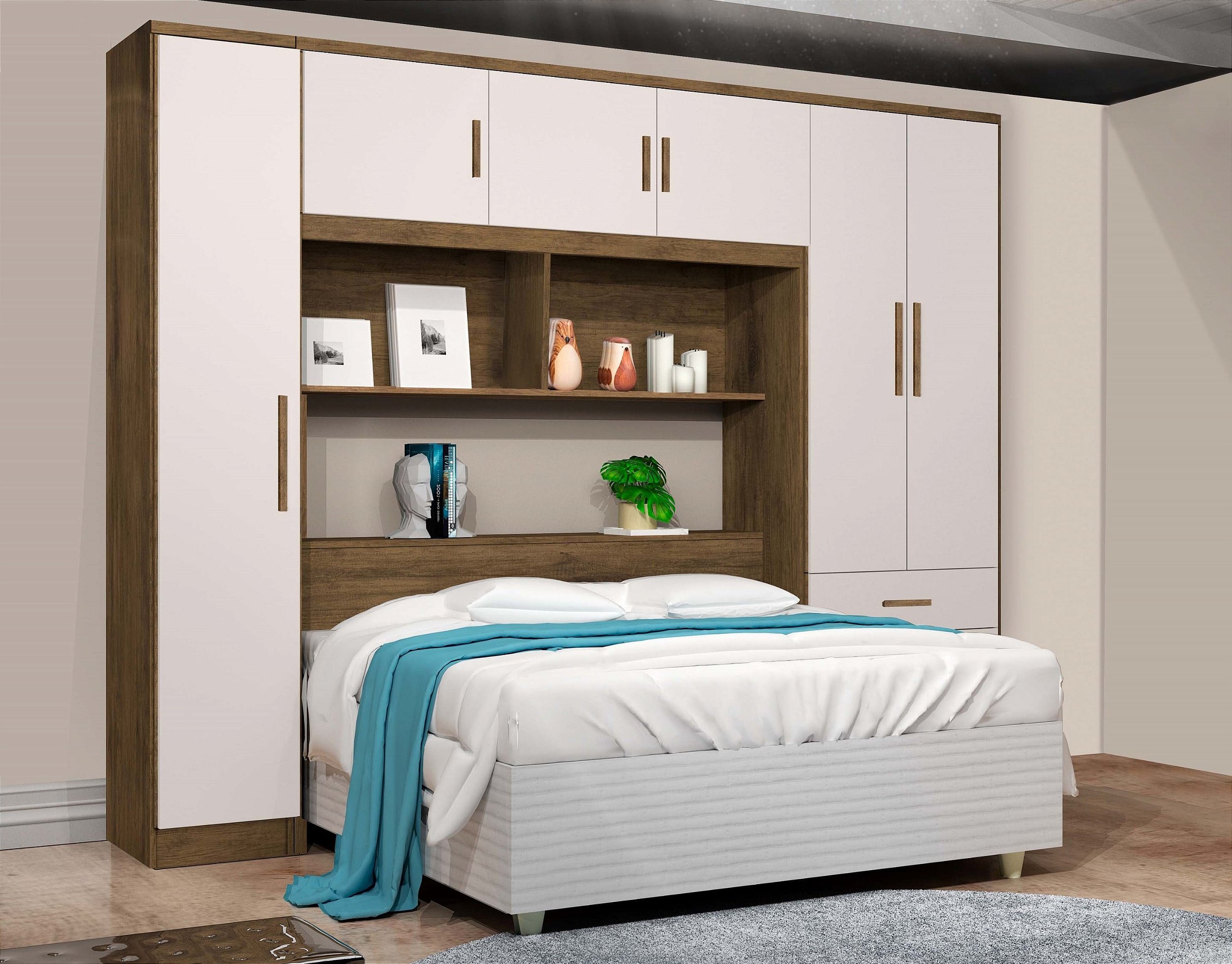 Guarda Roupa Casal com Cabeceira 6 Portas 3 Gavetas Top Cancun J&A Móveis