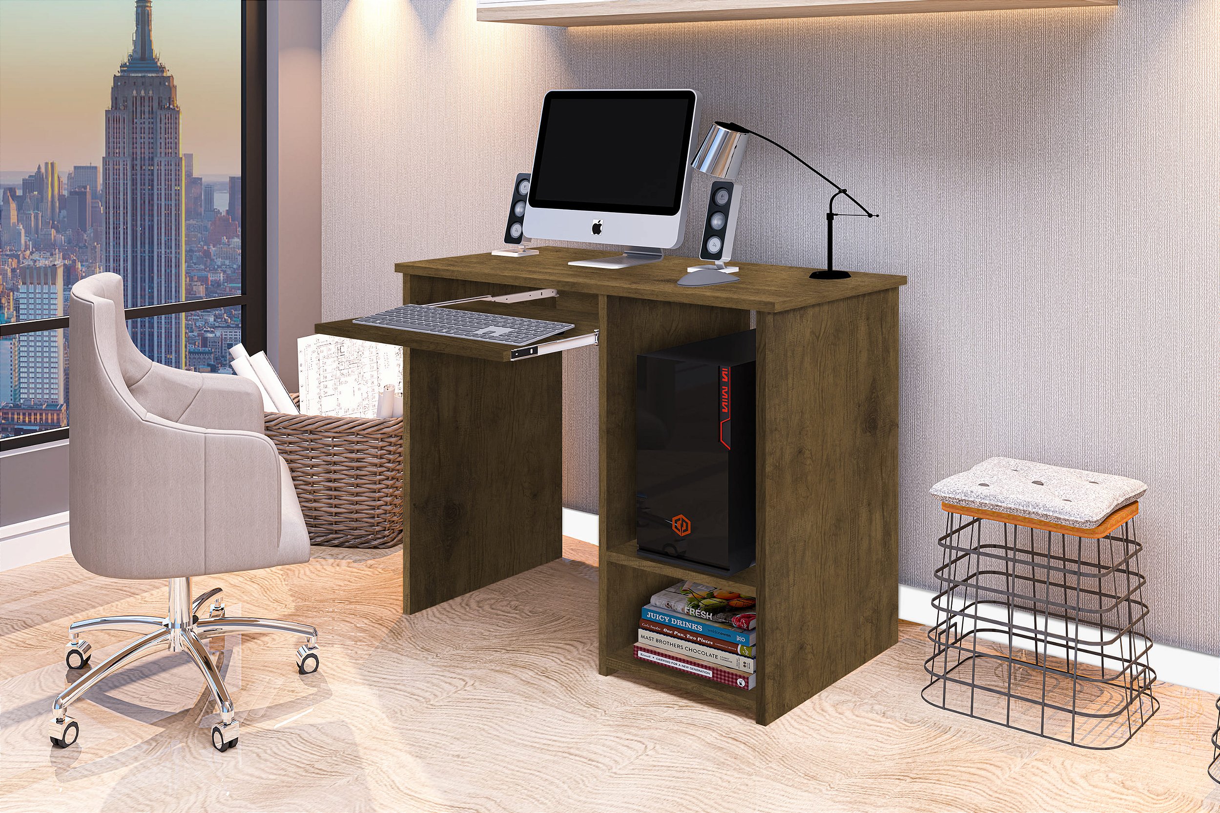 Está procurando uma Escrivaninha com suporte para teclado, suporte para CPU e extremamente pratica? Você acaba de encontrar a Escrivaninha Inglaterra. Ela tem o suporte de teclado composto com as corrediças metálicas, fazendo assim com que abra e feche o suporte, facilitando assim seu espaço.