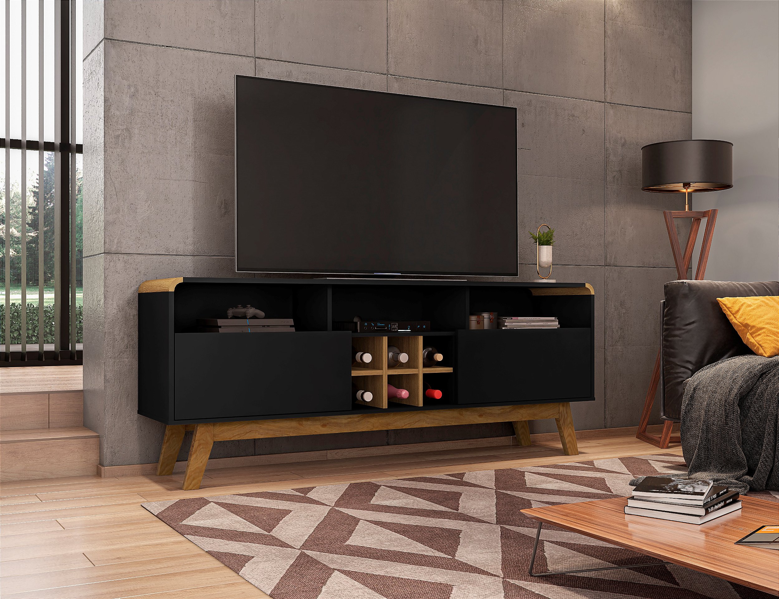 O Rack Larimar é perfeito para sua sala! Com design retrô que alinhado com os cantos irão agregar muito mais charme e requinte ao seu ambiente. Ele suporta Tvs de até 65 polegadas. Amplo espaço para aparelhos eletrônicos, e portas com dobradiças metálicas. Pés de madeira maciça proporcionando ao produto maior resistência e durabilidade.