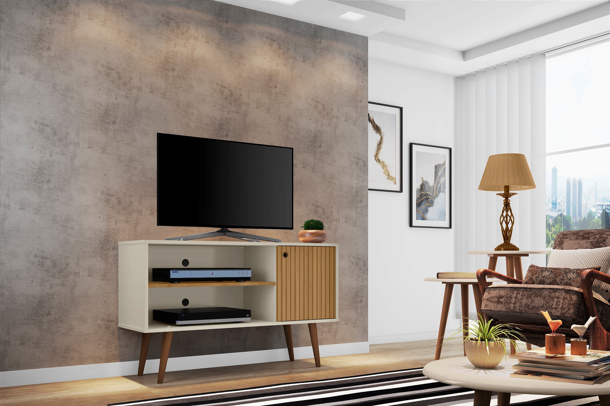 O Produto é elaborado em Mdp 15mm e Mdf 15mm, o que proporciona ao mesmo resistência e durabilidade, possui pés em madeira maciça, tornando o mais estável e resistência quanto a ação do tempo. É um rack compacto com estilo retro que agrega charme e requinte ao ambiente, possui uma prateleira para melhor acomodar aparelhos eletrônicos que complementam as Tvs, bem como qualquer tipo de objeto de decoração. Um nicho que é fechado por uma porta que pode acomodar perfeitamente qualquer pertence.
